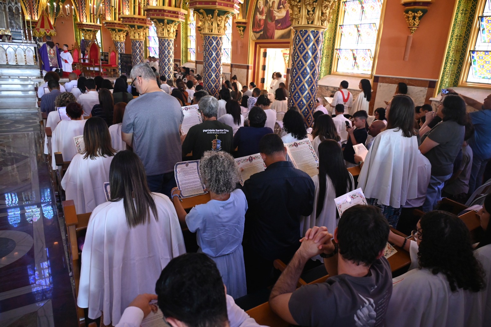 La Santa Misa fue presidida por el Pbro. Zoghaib, EP, quien en su homilía resaltó la importancia de la esclavitud de amor a María como un camino seguro hacia la santidad. En un clima de gran recogimiento y piedad, los participantes realizaron su acto de consagración, entregando a los pies de la Virgen sus anhelos y su compromiso de vivir con mayor fidelidad las enseñanzas del Evangelio.