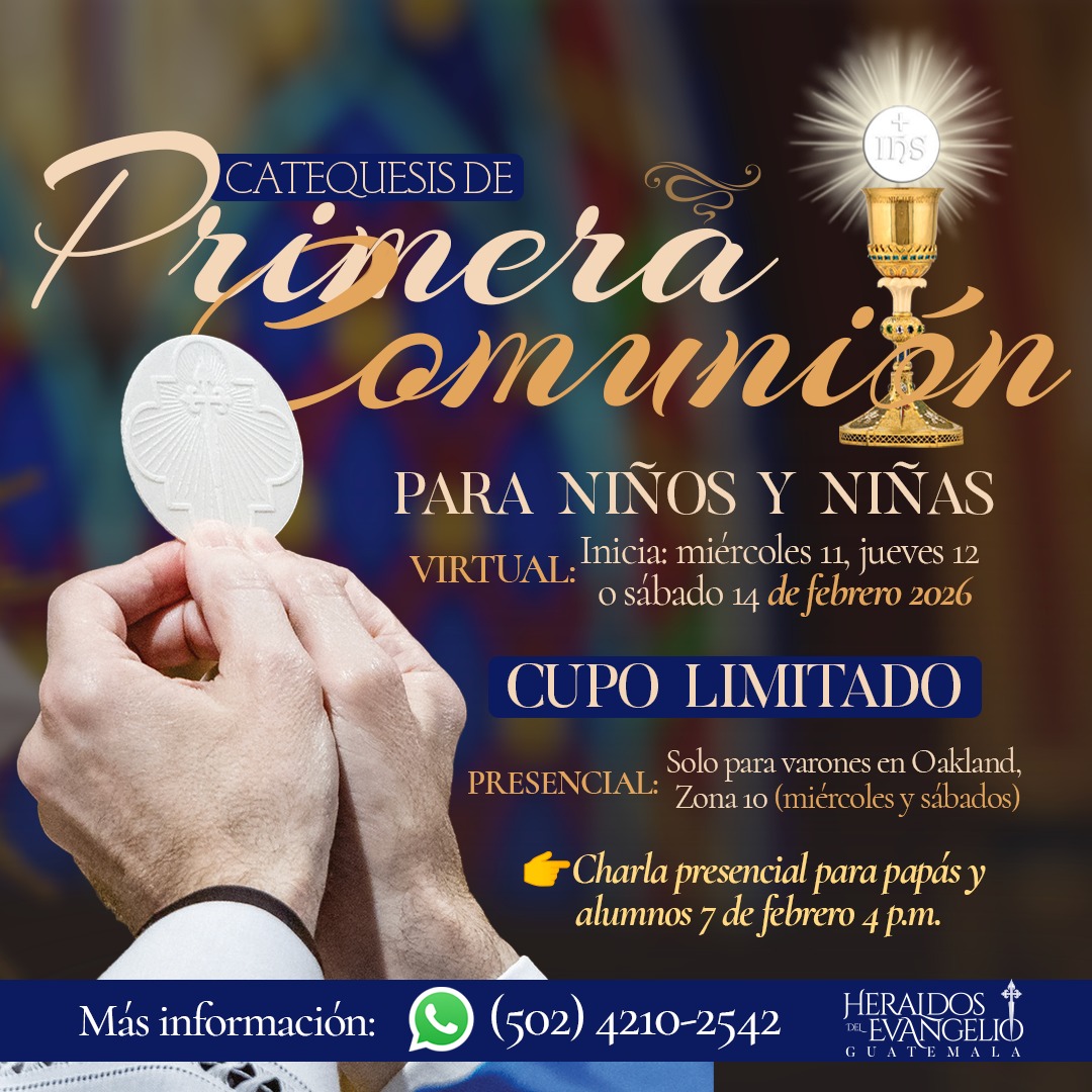 Le invitamos a celebrar el Primer Sábado de Mes en la Casa de Formación de los Heraldos del Evangelio en Guatemala. Este es un evento donde compartimos como comunidad, aprendemos de las enseñanzas de Nuestra Santa Madre y de la palabra de Dios.