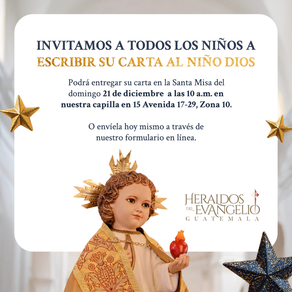 Invitamos a todos los niños a escribir su carta al Niño Dios y entregarla en la Santa Misa del 21 de diciembre en la Capilla Heraldos del Evangelio, o enviarla en línea desde casa. Una hermosa tradición para expresar fe, gratitud y sueños.