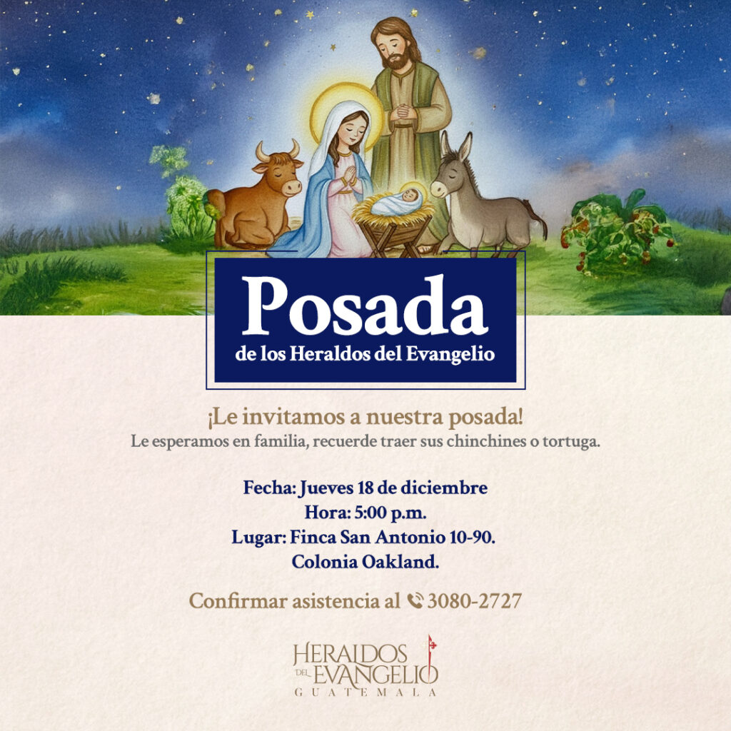 Participe en la Posada Navideña de los Heraldos del Evangelio este 18 de diciembre a las 5:00 p.m. en Finca San Antonio, Colonia Oakland. Una tarde de fe, música y tradición para toda la familia.